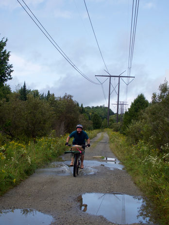 we rode for more than an hour before hitting any pavement, which took us to a crazy climb along a power line road. we climbed for a while and then descended for a while and then climbed some more. we were deep in the woods at this point, the rain had mostly stopped and we rode for hours without seeing another human.