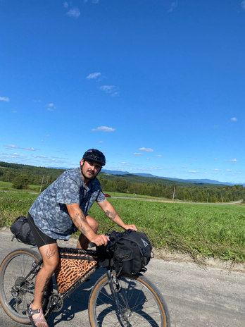 at one point we stopped for a snack break at the top of a tough climb, and sat there for a while looking at a scenic vista while more cars than we expected drove by us on the seemingly sleepy gravel road. one of these cars stopped and the driver rolled down her window - i half expected her to tell us we had to move - instead, she asked if we were alright. she offered us water from her house, apparently the best water in the world, asked if we needed to use the bathroom, very sweet! i wasn’t in desperate need of water but wouldn’t have minded a fill up, so i asked where her house was. she pointed towards the giant hill we had just finished struggling up for several miles “just down at the bottom of the hill”. we told her we’re headed the opposite direction but thanks for her kindness, and she told us we should follow her son’s youtube channel, “801 garage”.